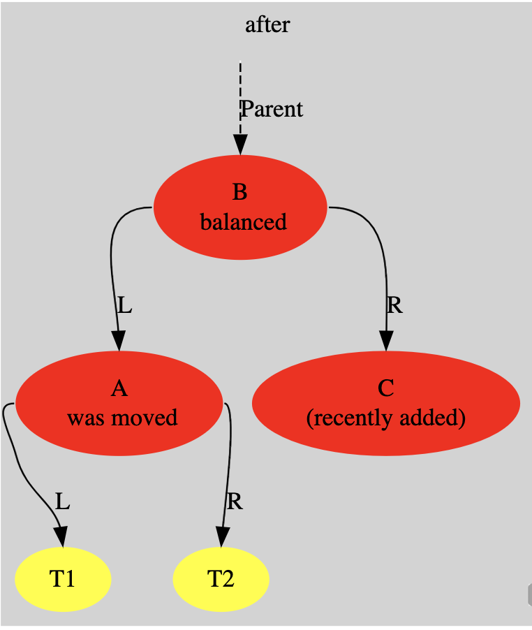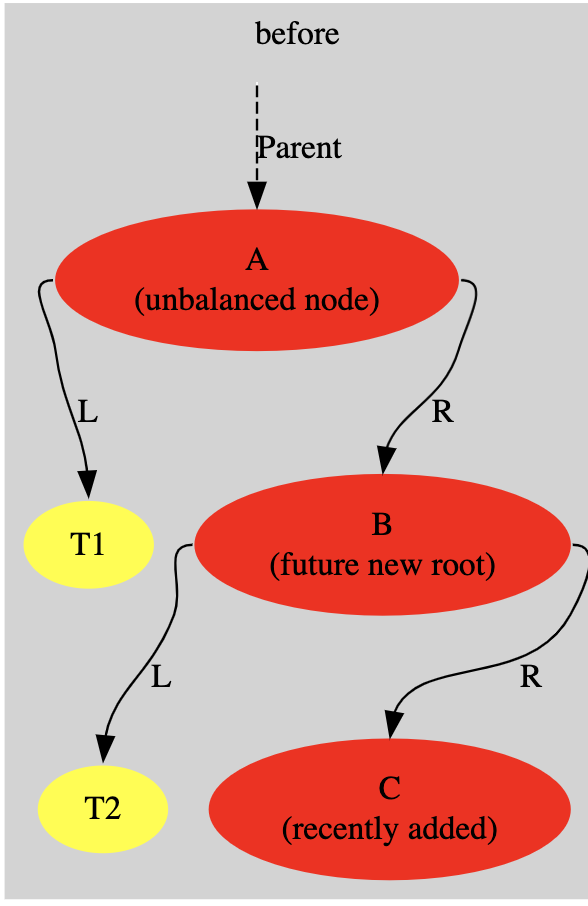 - This twist “lifts” the central node B and makes it the new root of the substructure, causing the old parent A to fall to the left side