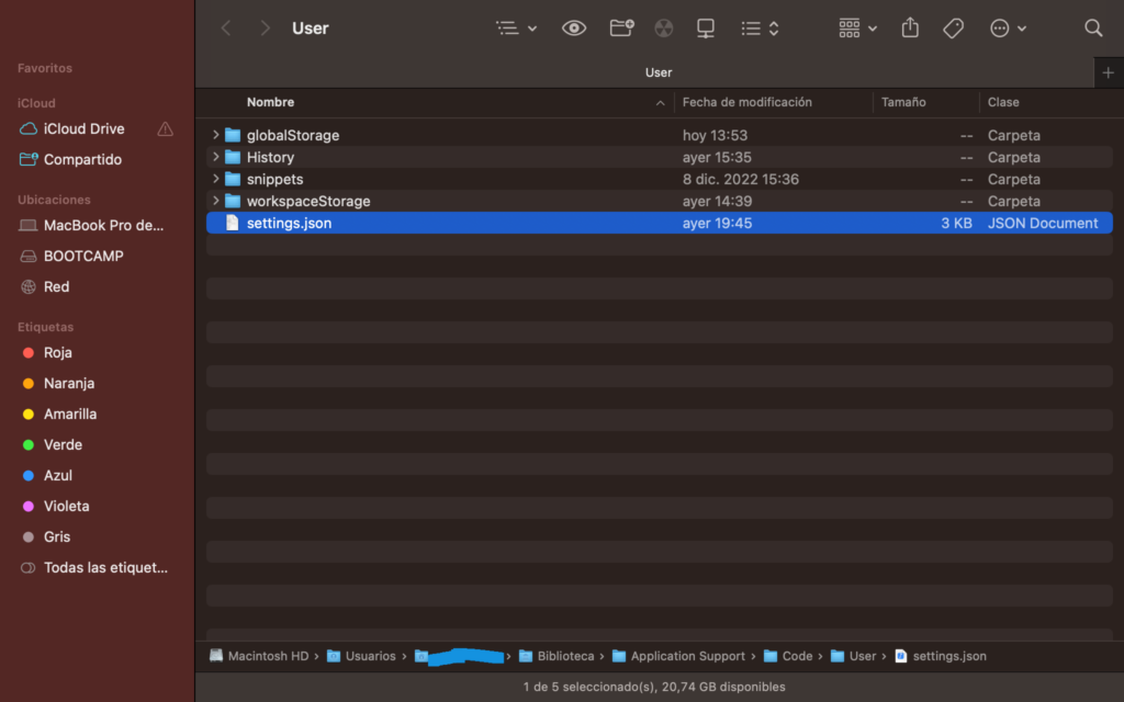 • located in /Users/xxxx/Library/Application Support/Code/User/settings.json