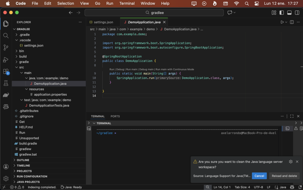 You should write “Java: Clean Java Languaje Server Workspace” there