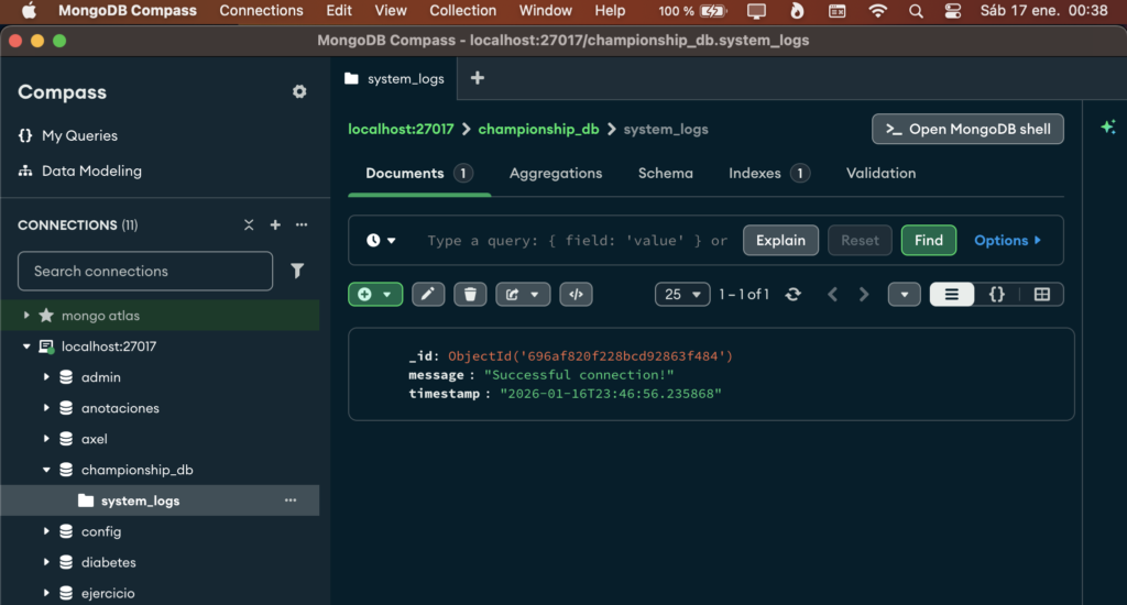 There you can see if MongoDB is working, view stored documents, and perform queries.