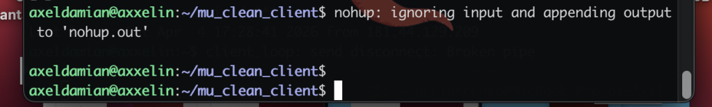 - nohup: Tells the Ubuntu Linux server: “If I disconnect, don’t kill this process”