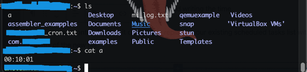 * * * * echo "hola mundo" >> /home/username/mi_log.txt