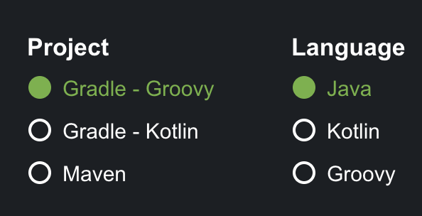 - Choose the programming language (Java, Kotlin, Groovy)