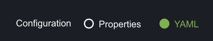 Configuration files: .properties (key.field=value) or .YAML (properties and values with indentation)