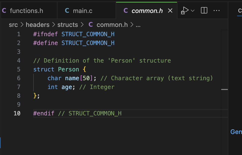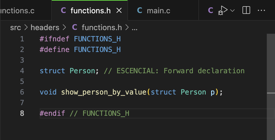 - In the .c we put #include “x.h” of the .h, we never put #include “x.c” (we don’t put the .c)