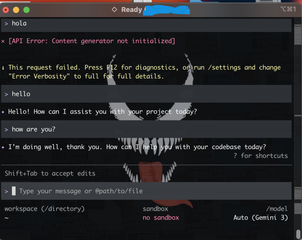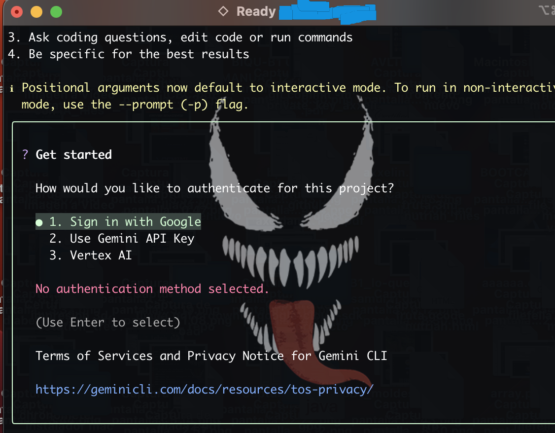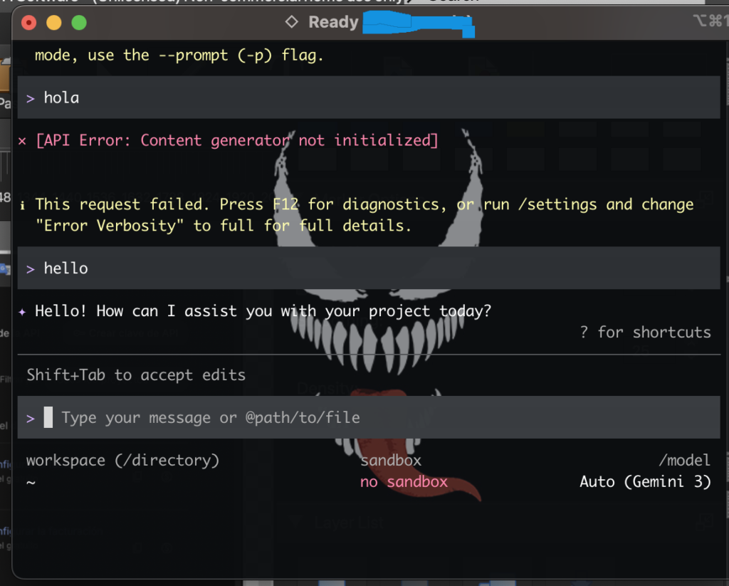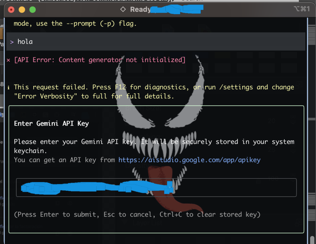 put the gemini api key (from the web, the gennerated) in the console (gemini CLI):