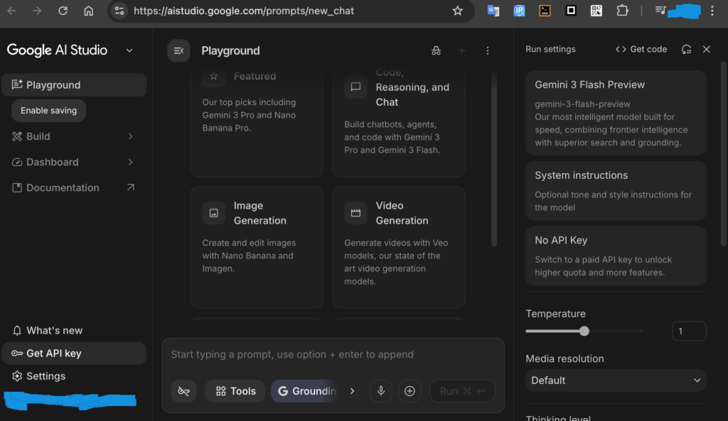 You generate/create the Gemini API key from the menu on the left.