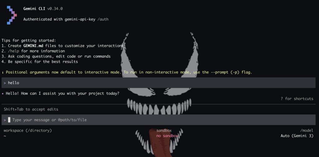 npx @google/gemini-cli "hello"