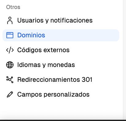 luego, en configuración, seleccionas “Dominios”