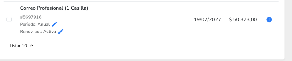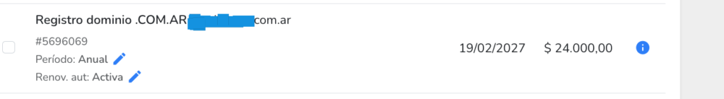 y también pago por 1 casilla de email por año: info@xxxx.com.ar