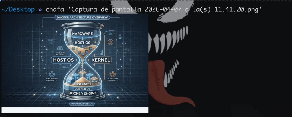 April 7, 2026 | No Comments Install with brew: brew install chafa use or command: chafa image.png If the image name contains spaces, enclose everything in single quotes (‘) chafa 'image name.png' Post Views: 6 Tags: chafa, command, console, image, macos, terminal, tty
